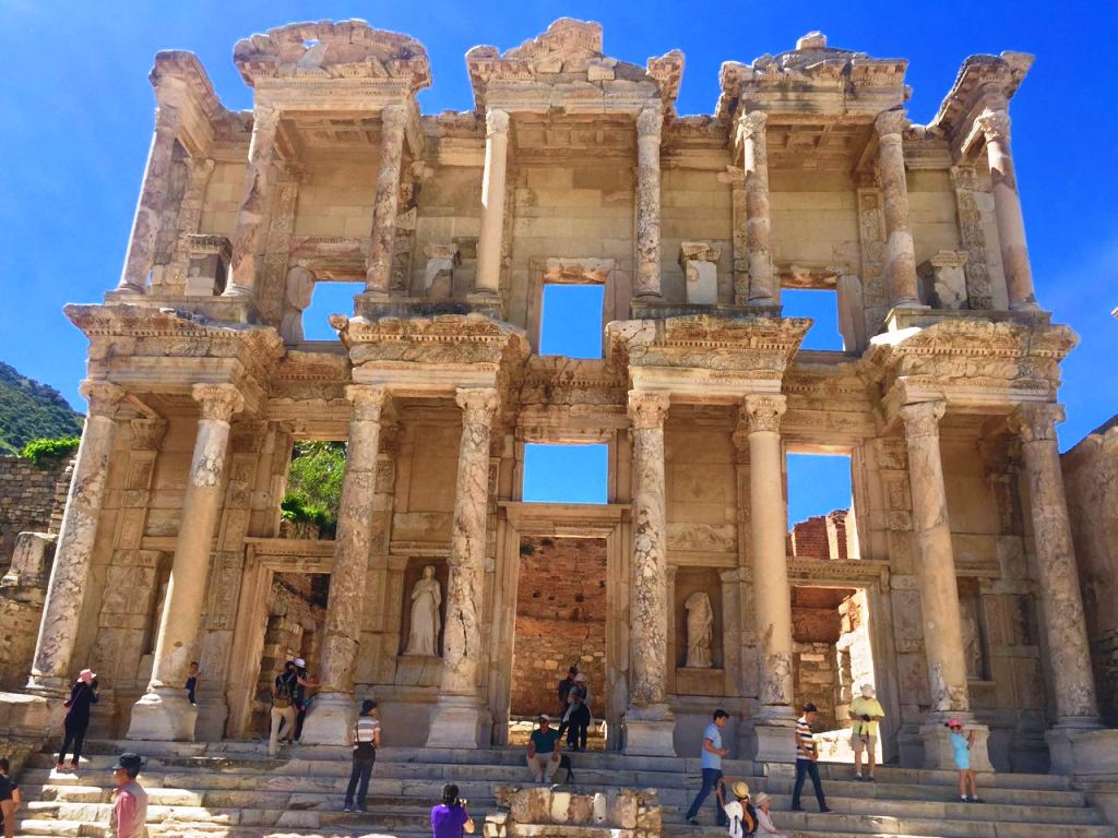 Ephesus was very famous during 5th century BC for the Temple of Artemis. Artemis Temple was announced one of the seven ancient wonders of the world. There are very famous monumental buildings in Ephesus ancient city such as Celsus Library, Great well preserved theatre for 24.000 people, Odeon, Hadrian Fountain, Terrace Houses…